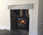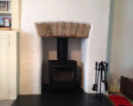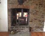 A recent job undertaken Nr Launceston, stone fireplace and open fire, opened up, original brick arch found, chimney lined, slate hearth & Dunsley Solo 10 stove installed.